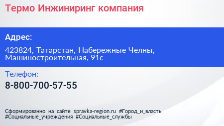 Термо Инжиниринг, компания по адресу 423824, Татарстан, Набережные Челны, Машиностроительная, 91с в дальнейшем Организация, размещена в следующих категориях: