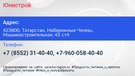 Юнистрой по адресу 423800, Татарстан, Набережные Челны, Машиностроительная, 43 ст4 в дальнейшем Организация, размещена в следующих категориях: