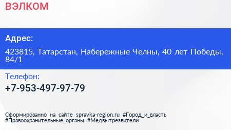 ВЭЛКОМ по адресу 423815, Татарстан, Набережные Челны, 40 лет Победы, 84/1 в дальнейшем Организация, размещена в следующих категориях: