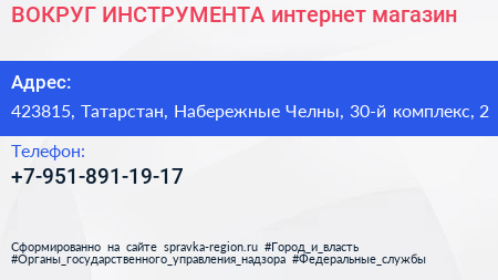 ВОКРУГ ИНСТРУМЕНТА, интернет-магазин по адресу 423815, Татарстан, Набережные Челны, 30-й комплекс, 2 в дальнейшем Организация, размещена в следующих категориях: