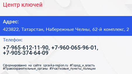 Центр ключей по адресу 423822, Татарстан, Набережные Челны, 62-й комплекс, 2 в дальнейшем Организация, размещена в следующих категориях: