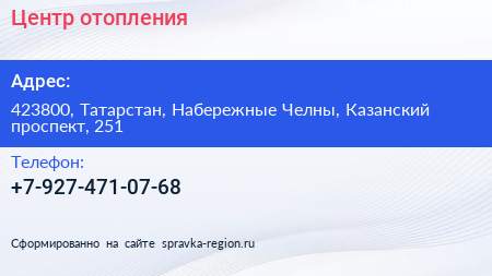 Центр отопления по адресу 423800, Татарстан, Набережные Челны, Казанский проспект, 251 в дальнейшем Организация, размещена в следующих категориях: