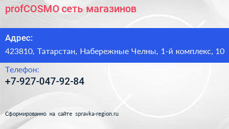 profCOSMO, сеть магазинов по адресу 423810, Татарстан, Набережные Челны, 1-й комплекс, 10 в дальнейшем Организация, размещена в следующих категориях: