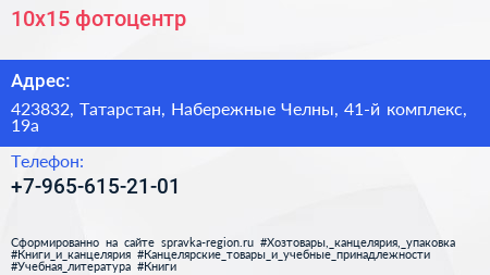 10х15, фотоцентр по адресу 423832, Татарстан, Набережные Челны, 41-й комплекс, 19а в дальнейшем Организация, размещена в следующих категориях: