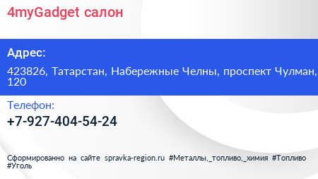 4myGadget, салон по адресу 423826, Татарстан, Набережные Челны, проспект Чулман, 120 в дальнейшем Организация, размещена в следующих категориях: