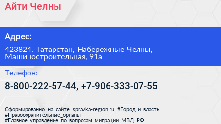 Айти Челны по адресу 423824, Татарстан, Набережные Челны, Машиностроительная, 91а в дальнейшем Организация, размещена в следующих категориях: