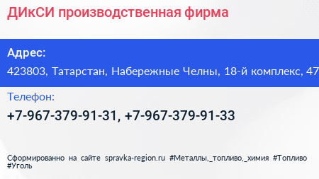 ДИкСИ, производственная фирма по адресу 423803, Татарстан, Набережные Челны, 18-й комплекс, 47 в дальнейшем Организация, размещена в следующих категориях: