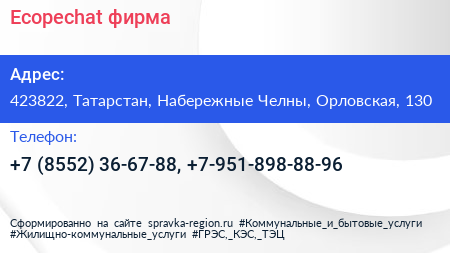 Ecopechat, фирма по адресу 423822, Татарстан, Набережные Челны, Орловская, 130 в дальнейшем Организация, размещена в следующих категориях: