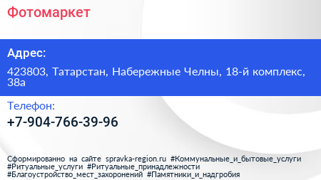 Фотомаркет по адресу 423803, Татарстан, Набережные Челны, 18-й комплекс, 38а в дальнейшем Организация, размещена в следующих категориях: