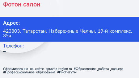 Фотон, салон по адресу 423803, Татарстан, Набережные Челны, 19-й комплекс, 35а в дальнейшем Организация, размещена в следующих категориях:
