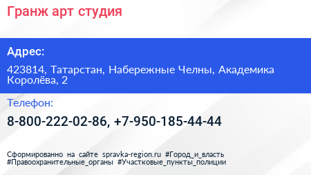 Гранж, арт-студия по адресу 423814, Татарстан, Набережные Челны, Академика Королёва, 2 в дальнейшем Организация, размещена в следующих категориях: