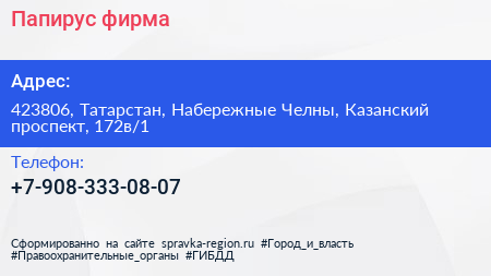 Папирус, фирма по адресу 423806, Татарстан, Набережные Челны, Казанский проспект, 172в/1 в дальнейшем Организация, размещена в следующих категориях: