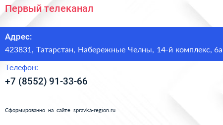 Первый, телеканал по адресу 423831, Татарстан, Набережные Челны, 14-й комплекс, 6а в дальнейшем Организация, размещена в следующих категориях: