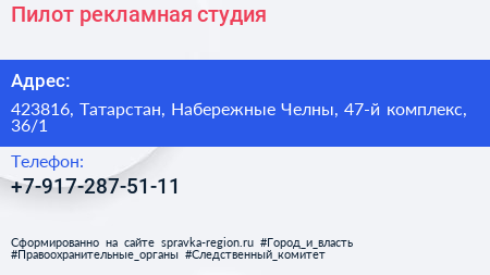 Пилот, рекламная студия по адресу 423816, Татарстан, Набережные Челны, 47-й комплекс, 36/1 в дальнейшем Организация, размещена в следующих категориях: