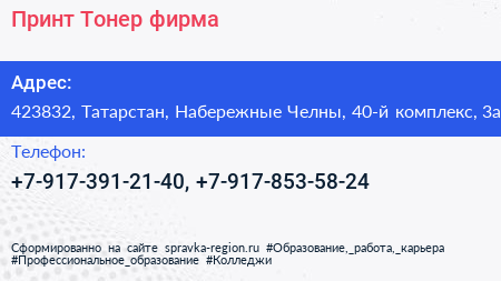 Принт-Тонер, фирма по адресу 423832, Татарстан, Набережные Челны, 40-й комплекс, 3а в дальнейшем Организация, размещена в следующих категориях: