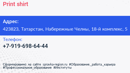Print-shirt по адресу 423823, Татарстан, Набережные Челны, 18-й комплекс, 5 в дальнейшем Организация, размещена в следующих категориях: