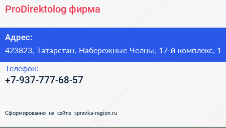 ProDirektolog, фирма по адресу 423823, Татарстан, Набережные Челны, 17-й комплекс, 1 в дальнейшем Организация, размещена в следующих категориях: