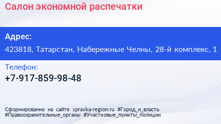 Салон экономной распечатки по адресу 423818, Татарстан, Набережные Челны, 28-й комплекс, 1 в дальнейшем Организация, размещена в следующих категориях:
