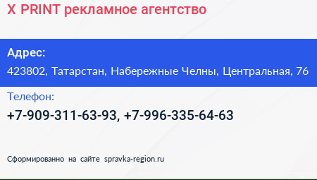 X-PRINT, рекламное агентство по адресу 423802, Татарстан, Набережные Челны, Центральная, 76 в дальнейшем Организация, размещена в следующих категориях: