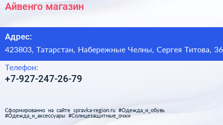 Айвенго, магазин по адресу 423803, Татарстан, Набережные Челны, Сергея Титова, 36 в дальнейшем Организация, размещена в следующих категориях:
