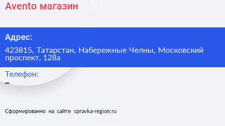 Avento$, магазин по адресу 423815, Татарстан, Набережные Челны, Московский проспект, 128а в дальнейшем Организация, размещена в следующих категориях: