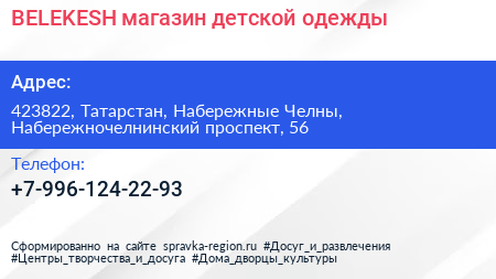 BELEKESH, магазин детской одежды по адресу 423822, Татарстан, Набережные Челны, Набережночелнинский проспект, 56 в дальнейшем Организация, размещена в следующих категориях: