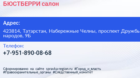 БЮСТБЕРРИ, салон по адресу 423814, Татарстан, Набережные Челны, проспект Дружбы народов, 9Б в дальнейшем Организация, размещена в следующих категориях: