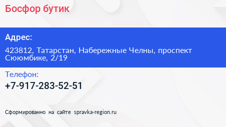 Босфор, бутик по адресу 423812, Татарстан, Набережные Челны, проспект Сююмбике, 2/19 в дальнейшем Организация, размещена в следующих категориях: