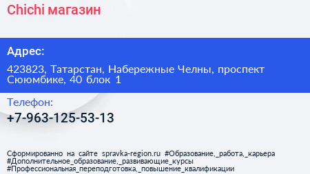 Chichi, магазин по адресу 423823, Татарстан, Набережные Челны, проспект Сююмбике, 40 блок 1 в дальнейшем Организация, размещена в следующих категориях: