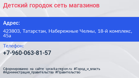 Детский городок, сеть магазинов по адресу 423803, Татарстан, Набережные Челны, 18-й комплекс, 45а в дальнейшем Организация, размещена в следующих категориях: