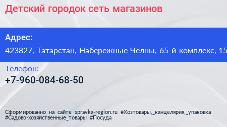 Детский городок, сеть магазинов по адресу 423827, Татарстан, Набережные Челны, 65-й комплекс, 15 в дальнейшем Организация, размещена в следующих категориях: