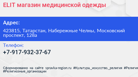 ELIT, магазин медицинской одежды по адресу 423815, Татарстан, Набережные Челны, Московский проспект, 128а в дальнейшем Организация, размещена в следующих категориях: