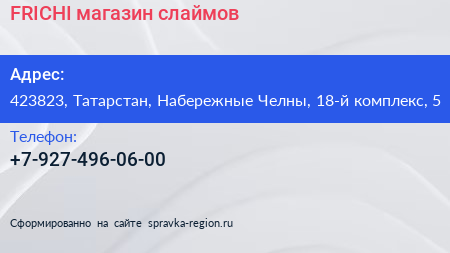 FRICHI, магазин слаймов по адресу 423823, Татарстан, Набережные Челны, 18-й комплекс, 5 в дальнейшем Организация, размещена в следующих категориях: