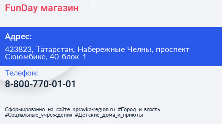 FunDay, магазин по адресу 423823, Татарстан, Набережные Челны, проспект Сююмбике, 40 блок 1 в дальнейшем Организация, размещена в следующих категориях:
