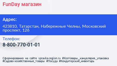 FunDay, магазин по адресу 423810, Татарстан, Набережные Челны, Московский проспект, 126 в дальнейшем Организация, размещена в следующих категориях: