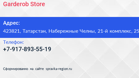 Garderob Store по адресу 423821, Татарстан, Набережные Челны, 21-й комплекс, 25 в дальнейшем Организация, размещена в следующих категориях: