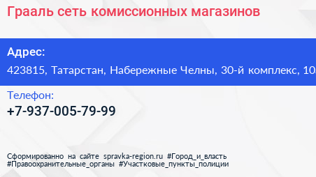 Грааль, сеть комиссионных магазинов по адресу 423815, Татарстан, Набережные Челны, 30-й комплекс, 10а в дальнейшем Организация, размещена в следующих категориях: