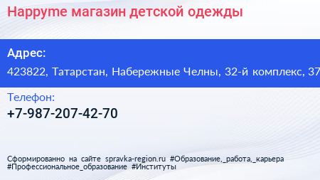 Happyme, магазин детской одежды по адресу 423822, Татарстан, Набережные Челны, 32-й комплекс, 37 в дальнейшем Организация, размещена в следующих категориях: