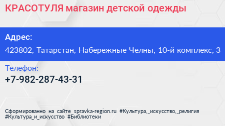 КРАСОТУЛЯ, магазин детской одежды по адресу 423802, Татарстан, Набережные Челны, 10-й комплекс, 3 в дальнейшем Организация, размещена в следующих категориях: