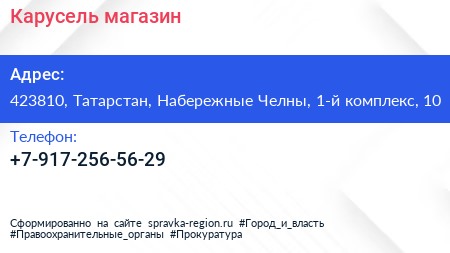 Карусель, магазин по адресу 423810, Татарстан, Набережные Челны, 1-й комплекс, 10 в дальнейшем Организация, размещена в следующих категориях: