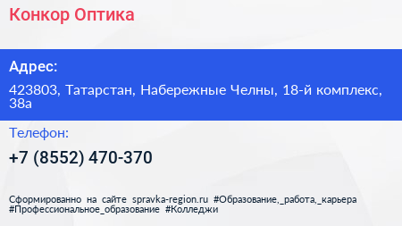 Конкор-Оптика по адресу 423803, Татарстан, Набережные Челны, 18-й комплекс, 38а в дальнейшем Организация, размещена в следующих категориях: