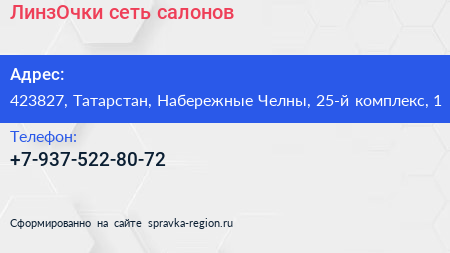 ЛинзОчки, сеть салонов по адресу 423827, Татарстан, Набережные Челны, 25-й комплекс, 1 в дальнейшем Организация, размещена в следующих категориях: