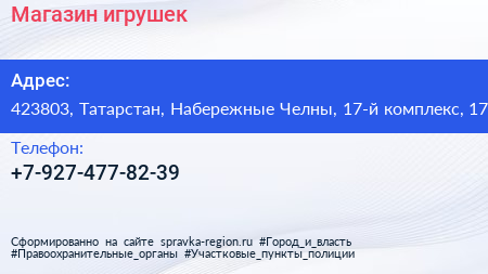 Магазин игрушек по адресу 423803, Татарстан, Набережные Челны, 17-й комплекс, 17 в дальнейшем Организация, размещена в следующих категориях:
