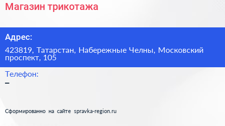 Магазин трикотажа по адресу 423819, Татарстан, Набережные Челны, Московский проспект, 105 в дальнейшем Организация, размещена в следующих категориях: