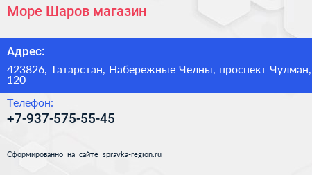 Море Шаров, магазин по адресу 423826, Татарстан, Набережные Челны, проспект Чулман, 120 в дальнейшем Организация, размещена в следующих категориях:
