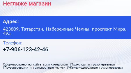 Неглиже, магазин по адресу 423809, Татарстан, Набережные Челны, проспект Мира, 49а в дальнейшем Организация, размещена в следующих категориях: