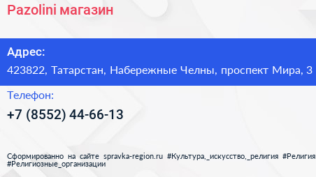 Pazolini, магазин по адресу 423822, Татарстан, Набережные Челны, проспект Мира, 3 в дальнейшем Организация, размещена в следующих категориях: