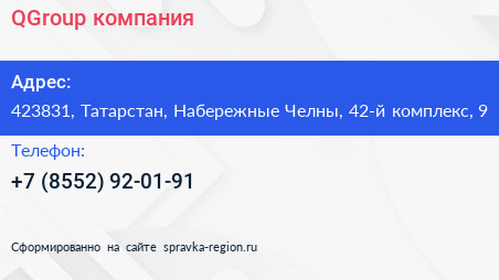 QGroup, компания по адресу 423831, Татарстан, Набережные Челны, 42-й комплекс, 9 в дальнейшем Организация, размещена в следующих категориях: