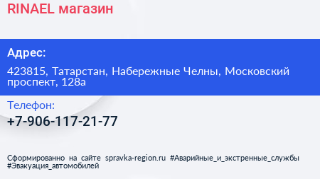 RINAEL, магазин по адресу 423815, Татарстан, Набережные Челны, Московский проспект, 128а в дальнейшем Организация, размещена в следующих категориях: