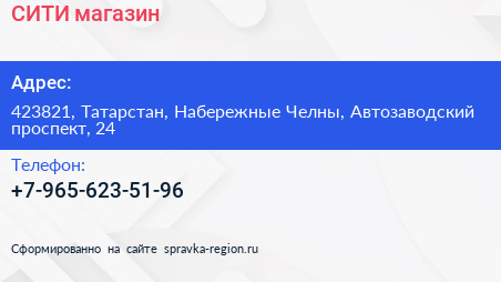 СИТИ, магазин по адресу 423821, Татарстан, Набережные Челны, Автозаводский проспект, 24 в дальнейшем Организация, размещена в следующих категориях: